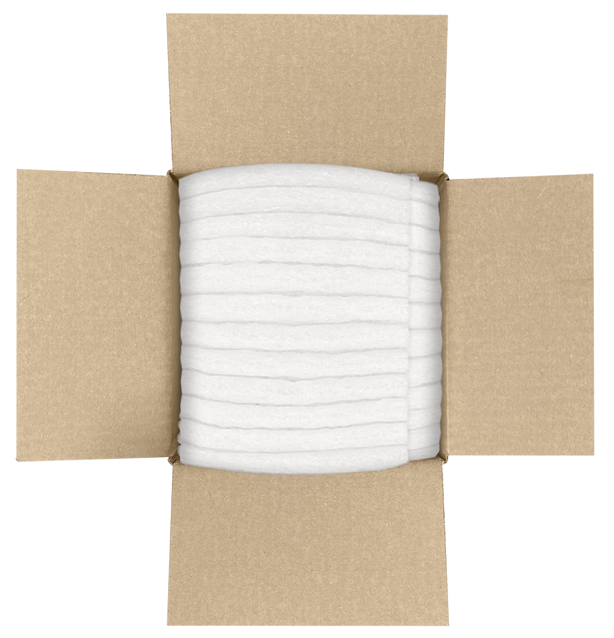 Flexible paper-based wrap designed for protective cushioning and sustainable packaging. Available in standard thicknesses (½” and 1”). Custom formats available.